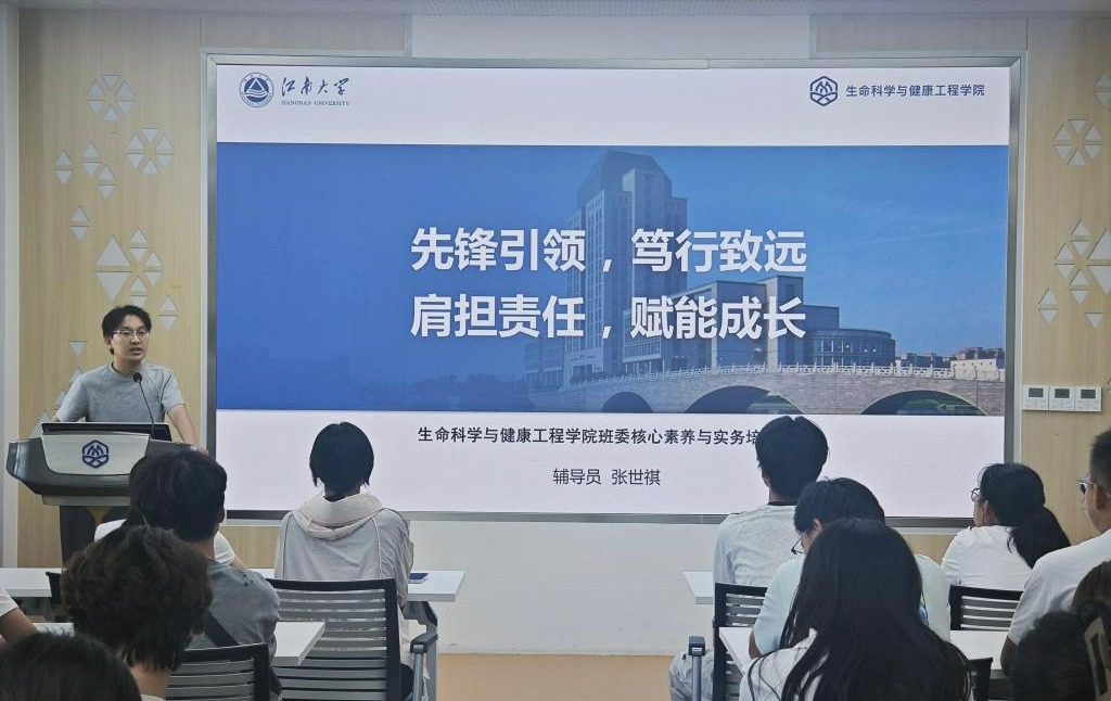 随后,张世祺从党员发展流程、校规校纪、安全教育与防诈骗宣传四个维度进行深入培训。他系统梳理了从递交入党申请书到成为正式党员的各个环节,明确了各阶段的时间节点与具体要求。结合真实案例,他现场分析了违纪行为的严重后果,提醒学生骨干以身作则、严守纪律并及时提醒班级同学严格遵守校规校纪。此外,他还围绕宿舍用电安全、实验室安全管理等内容强化安全意识,并通过“大数据时代你的标签”引入,列举了常见诈骗手段,提醒大家提高警惕,守护财产安全。