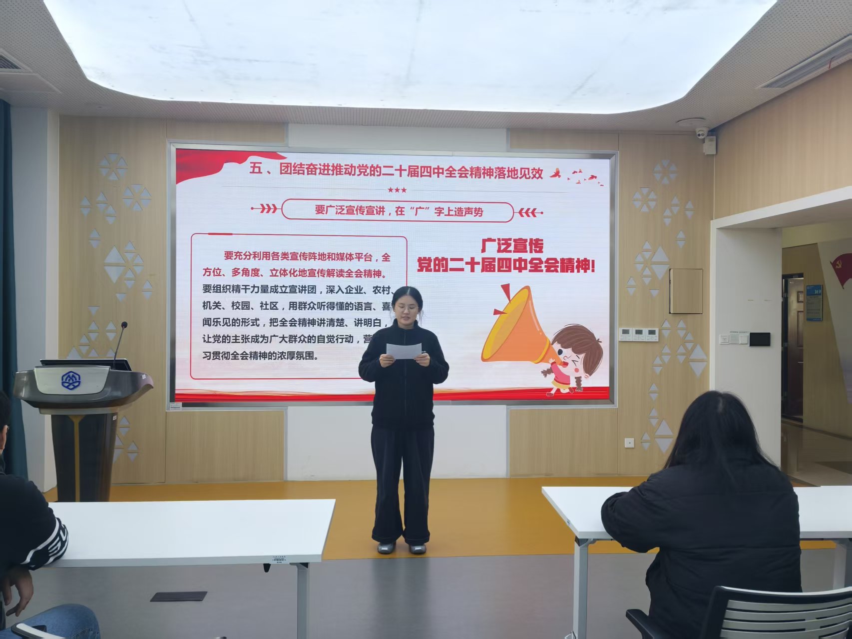 2025年11月25日,必赢bwin线路检测中心副院长杨子毅向研究生第四党支部全体党员讲授“深学全会精神,勇担时代使命”专题党课,全面深入传达和解读了党的二十届四中全会精神。活动由研究生第四党支部书记葛玲彤主持。